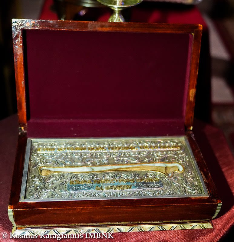 Κατά τη διάρκεια της Θείας Λειτουργίας τέθηκε σε προσκύνηση τεμάχιο του Ιερού Λειψάνου της Οσίας Μεθοδίας της εν Κιμώλω, το οποίο φυλάσσεται στο Επισκοπικό Παρεκκλήσιο του Οσίου Φιλαρέτου Σύρου και διεκόμισε ο Σεβασμιώτατος Μητροπολίτης κ. Δωρόθεος.