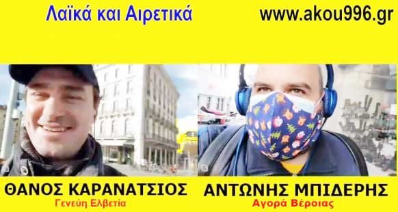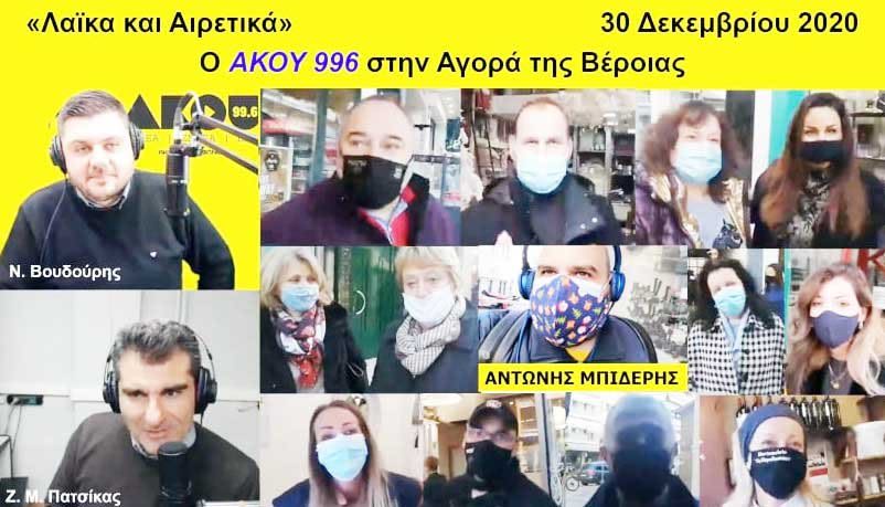 Η «μαραθώνια» τελευταία εκπομπή για το 2020 «Λαϊκά και Αιρετικά» της Τετάρτης 30 Δεκεμβρίου 2020 στον ΑΚΟΥ 99,6, ήταν μια μεγάλη «βόλτα», αφού ξεκίνησε με τον συνήθη ύποπτο Αντώνη Μπιδέρη που γύρισε με την κάμερα και το μικρόφωνο στους κεντρικούς δρόμους και στην αγορά της Βέροιας, μίλησε με καταστηματάρχες και περαστικούς και έδωσε τον παλμό με τον δικό του μοναδικό τρόπο.