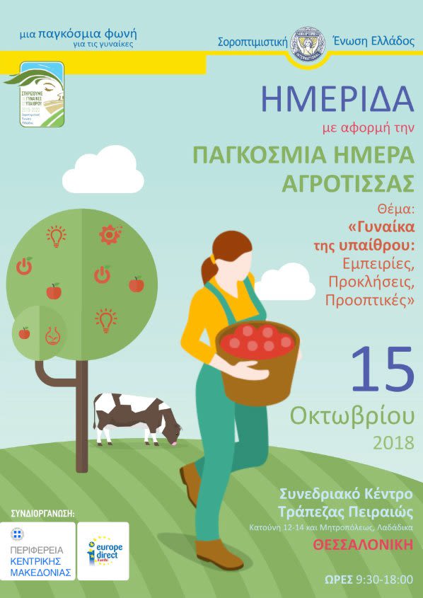 Mε αφορμή την παγκόσμια ημέρα της αγρότισσας η Περιφέρεια Κεντρικής Μακεδονίας, σε συνεργασία με τη Σοροπτιμιστική Ένωση Ελλάδος και το Europe Direct του Δημοκριτείου Πανεπιστημίου Ξάνθης διοργανώνουν τη Δευτέρα 15 Οκτωβρίου ημερίδα, που έχει τίτλο «Η Γυναίκα της Υπαίθρου: Εμπειρίες, Προκλήσεις, Προοπτικές».