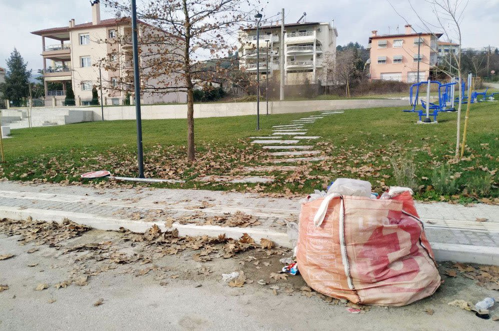 Επισκέφθηκα χθες για δεύτερη φορά μετά από περίπου δύο μήνες την νεόδμητη πλατεία στο Εργοχώρι Βέροιας και το μάτι μου έπεσε ακριβώς στο ίδιο πράγμα. Έναν μεγάλο πλαστικό σάκο που χρησιμοποιείται για την μεταφορά άμμου ή την απόρριψη μπάζων και που βρίσκεται παρατημένος στο ίδιο σημείο, με αυτό όταν βρέθηκα στο σημείο το Νοέμβριο 2022.