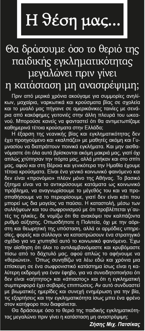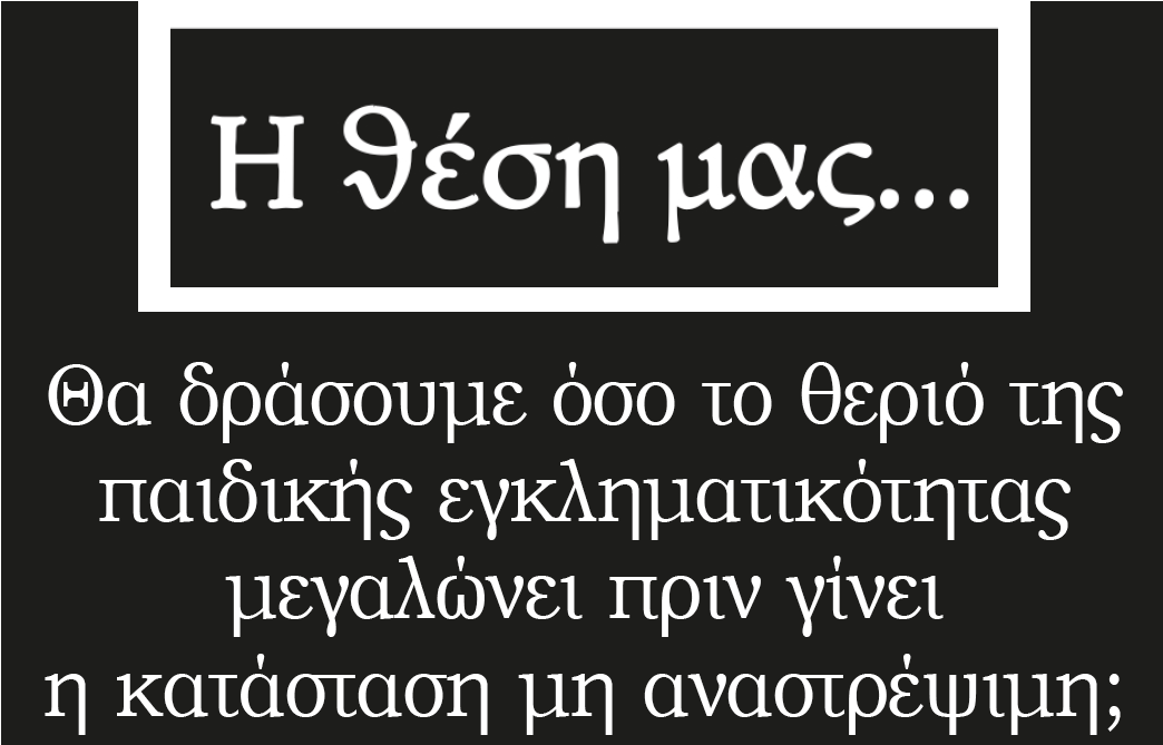 Θα δράσουμε όσο το θεριό της παιδικής εγκληματικότητας μεγαλώνει πριν γίνει η κατάσταση μη αναστρέψιμη;