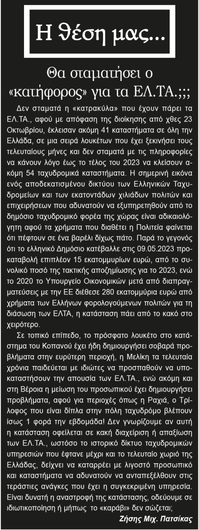 Θα σταματήσει ο «κατήφορος» για τα ΕΛ.ΤΑ.;;;
