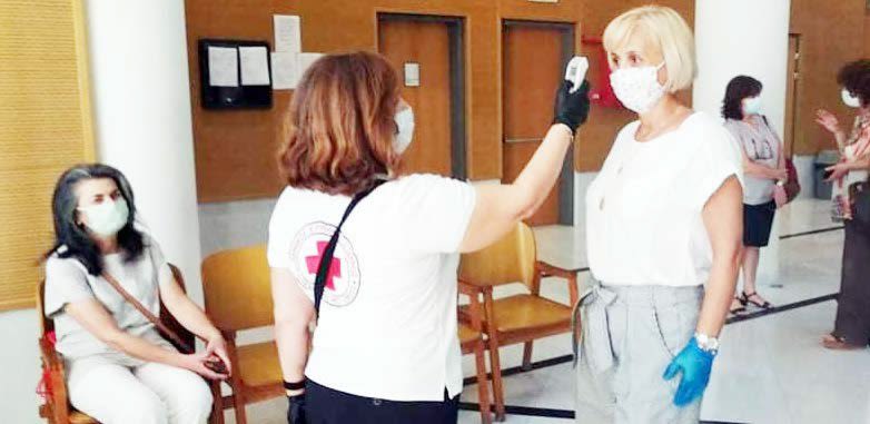 Με δυο ηλεκτρονικά θερμόμετρα ανά χείρας οι εθελόντριες του Ερυθρού Σταυρού της περιοχής, υποδέχθηκαν κάθε πολίτη που χρειάστηκε να εισέλθει στο Δικαστικό Μέγαρο της Βέροιας, ανταποκρινόμενες έτσι στο αίτημα του συλλόγου δικαστικών υπαλλήλων της Ημαθίας.