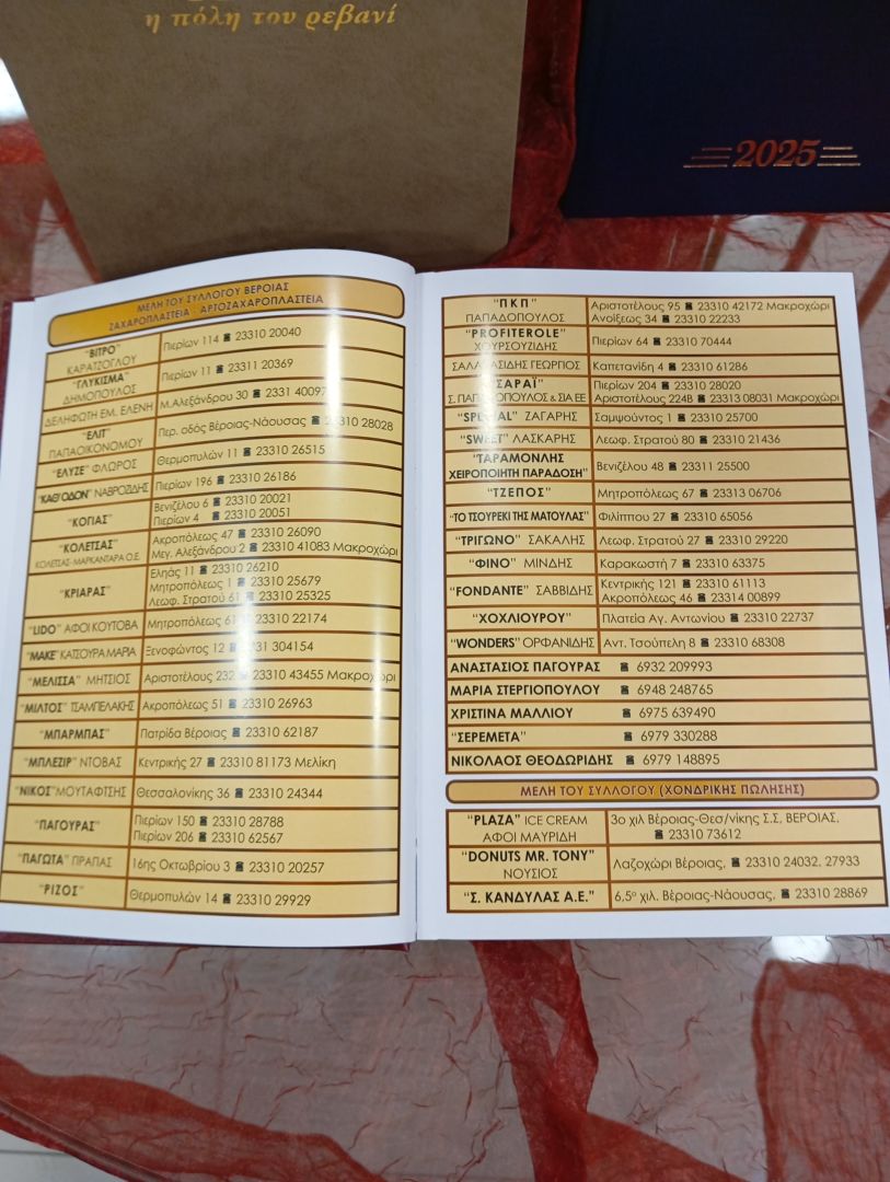 Τα τελευταία οκτώ χρόνια ο σύλλογος Ζαχαροπλαστών και Καταστηματαρχών Βέροιας κυκλοφορεί το Ημερολόγιο Ατζέντα κάθε νέου έτους. Ένα ημερολόγιο γεμάτο με αξιόλογους συνεργάτες, που χρόνια τώρα είναι στυλοβάτες του χώρου τους, σε μια πολύ καλή σχέση αλληλοϋποστήριξης.