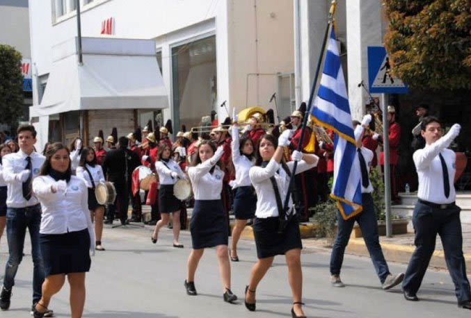 Ώρα 12.15: Παρέλαση προ του Λαού και των Επισήμων, των αναπήρων πολέμου, μαθητών και μαθητριών των σχολείων, προσκόπων, οδηγών κ.λ.π. με τις σημαίες τους, καθώς και τμημάτων Στρατού.