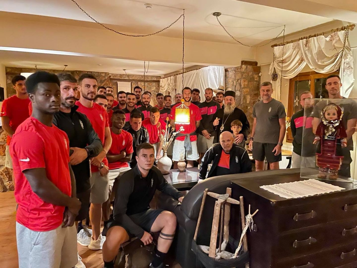 Την ευχή και ευλογία του Μητροπολίτη Δράμας κ.κ .Παύλου είχαν την τιμή να λάβουν οι ποδοσφαιριστές της Βασίλισσας του Βορρά, στο ξενοδοχείο όπου έχει καταλύσει η αποστολή για το βασικό στάδιο προετοιμασίας στον Βώλακα Δράμας.