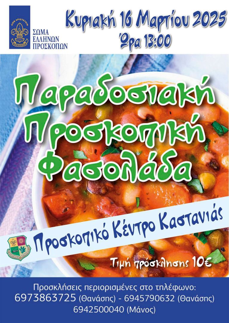 και ώρα 13.00 μ.μ. το Προσκοπικό Κέντρο Καστανιάς παραθέτει στις εγκαταστάσεις