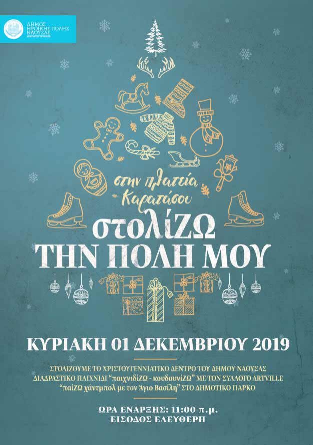 Εορταστικές εκπλήξεις με ποικίλες δράσεις για μικρούς και μεγάλους περιλαμβάνει η εκδήλωση «στολίΖΩ την πόλη μου», που διοργανώνει την Κυριακή 1η Δεκεμβρίου, ο Δήμος Νάουσας.