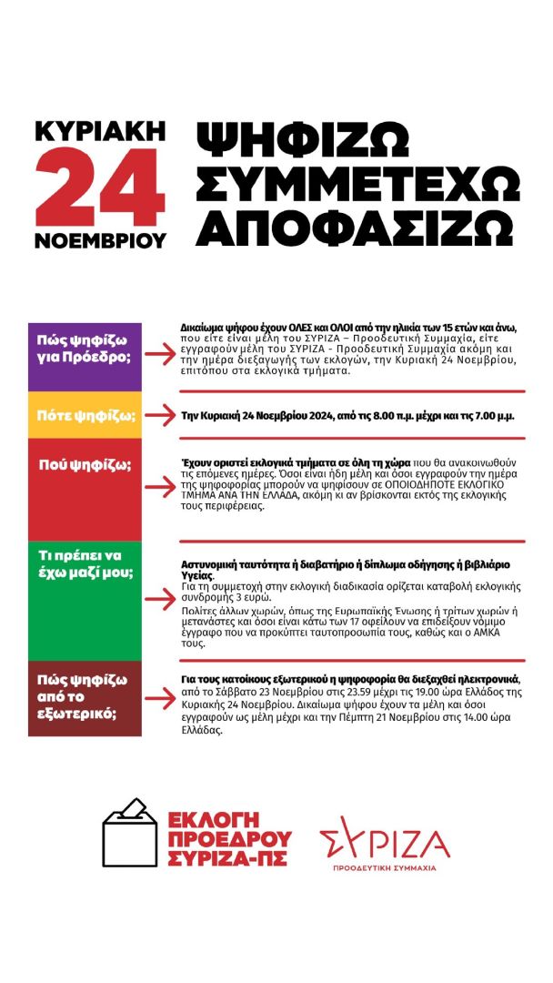 Από την ΝΕ ΣΥΡΙΖΑ Ημαθίας, γνωστοποιούνται τα εκλογικά κέντρα του νομού για τις εσωκομματικές εκλογές του κόμματος την Κυριακή 24 Νοεμβρίου 2024, για ανάδειξη νέου αρχηγού: