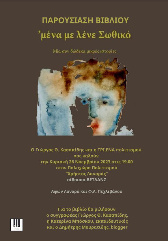 Το βιβλίο του Γιώργου Θ. Κασαπίδη «‘μένα με λένε Σωθικό» που κυκλοφορεί από τις εκδόσεις «ΤΡΙ.ΕΝΑ πολιτισμού» παρουσιάζεται στον Πολυχώρο Πολιτισμού “Χρήστος Λαναράς”, αίθουσα ΒΕΤΛΑΝΣ, την Κυριακή 26 Νοεμβρίου στις 19:00 στη Νάουσα.