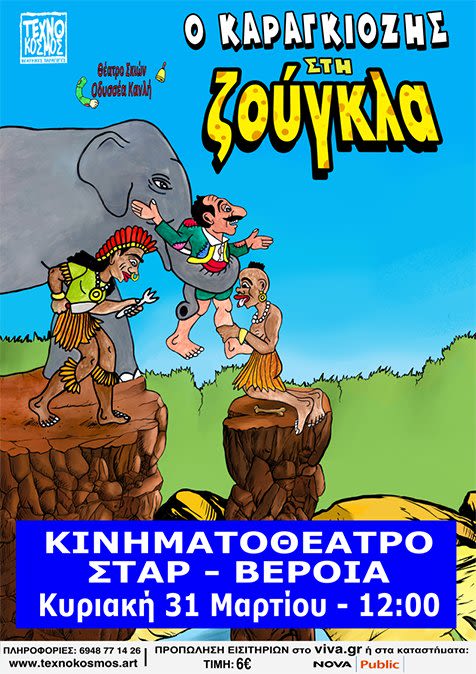 Το θέατρο Σκιών Οδυσσέα Κανλή παρουσιάζει την παράσταση Ο Καραγκιόζης στη ζούγκλα την Κυριακή 31/3 στις 12.00 στο κινηματοθέατρο ΣΤΑΡ.