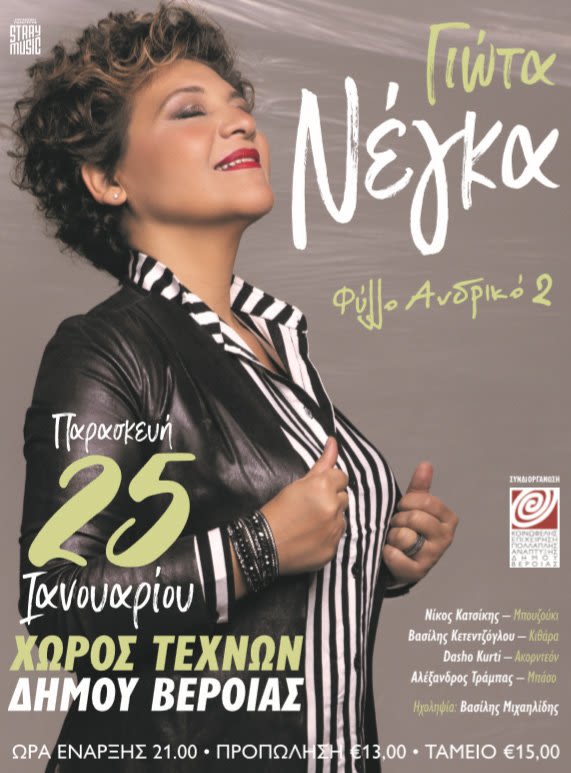 Μετά από 60 παραστάσεις και 30.000 θεατές, η Γιώτα Νέγκα δίνει ξανά ζωή στην παράσταση – πρόταση, «Φύλλο Ανδρικό», που παρουσιάζεται και στη Βέροια, στο Χώρο Τεχνών την Παρασκευή 25 Ιανουαρίου στις 9.00 μ.μ.
