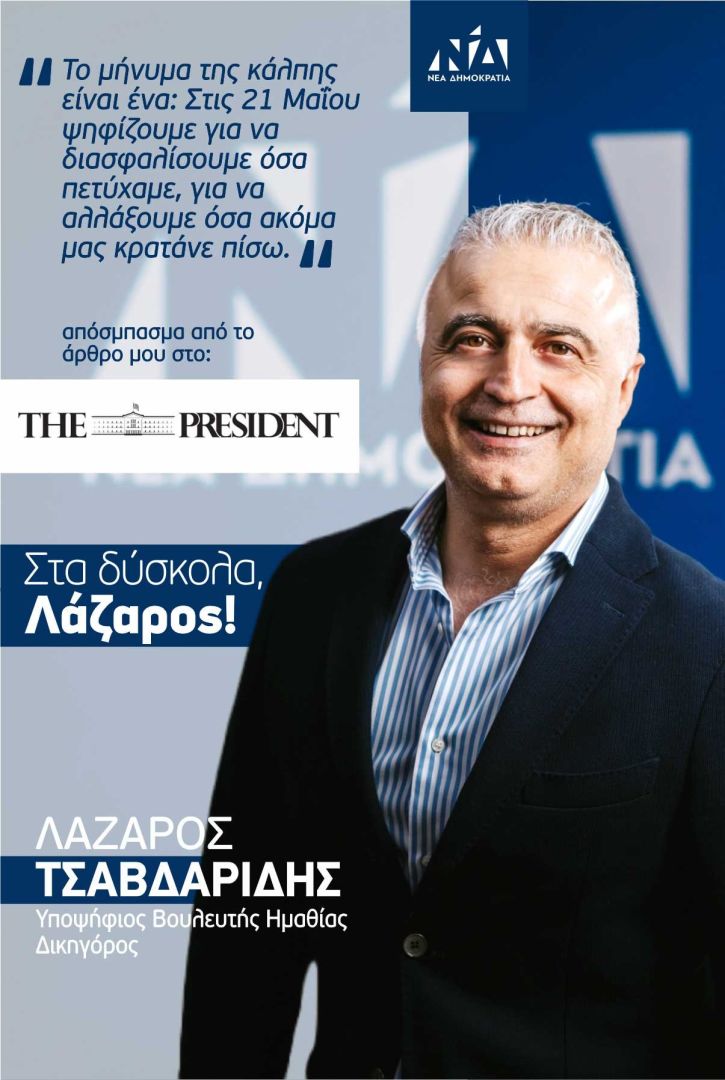 * Ο κ. Λάζαρος Τσαβδαρίδης είναι υποψήφιος Βουλευτής ΝΔ Ημαθίας