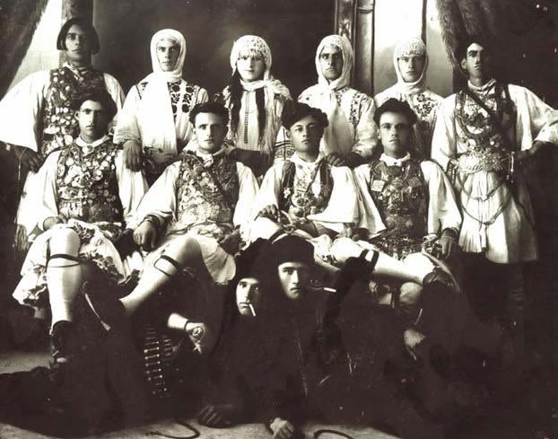 Βέροια, αποκριά του 1936. Από αριστερά καθισμένοι: Τάκης Κυρίτσης, Τάκης Κόκκινος, Γιώργης Αράβας, Γιάννης