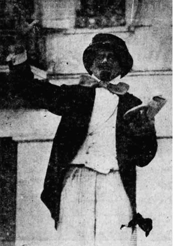 Ο Λάκης Καλλιάνδρας ντυμένος γυναικεία ευρωπαϊκά, κοκώνα αποκαλούμενος, με την ομπρέλα αναποδογυρισμένη, συνέλεγε τα εκ των παραθύρων και των κύκλω θεωμένων, ριπτόμενα νομίσματα, γροσάκια, μεταλλίκια, προς ψυχαγωγίαν των μεταμφιεσμένων.