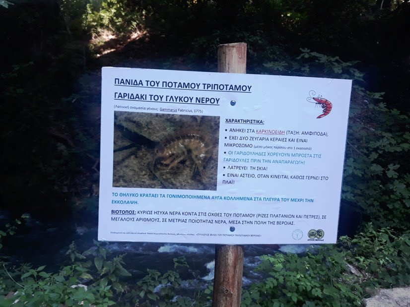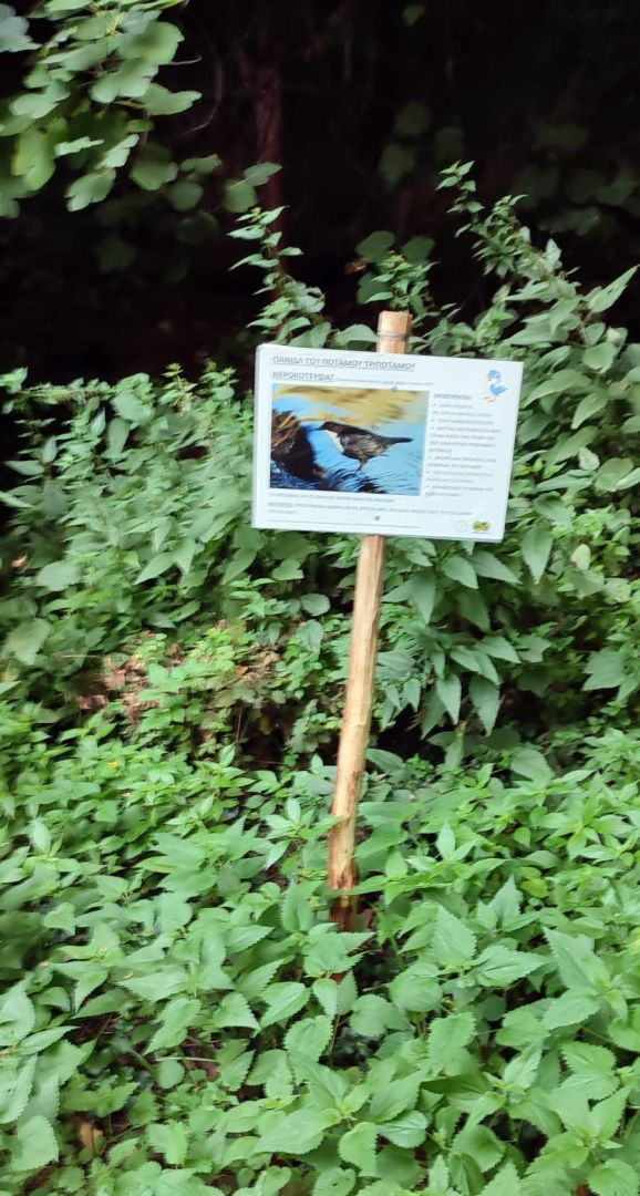 Δυστυχώς, ελάχιστες εβδομάδες μετά την τοποθέτησή τους, οι πληροφοριακές πινακίδες για τη χλωρίδα και την πανίδα του Τριπόταμου έπεσαν θύματα βανδαλισμού. Άλλες πεταμένες στα χορτάρια, άλλες προφανώς κατέληξαν στο ποτάμι… όλες κι όλες τέσσερις άφησαν όρθιες.