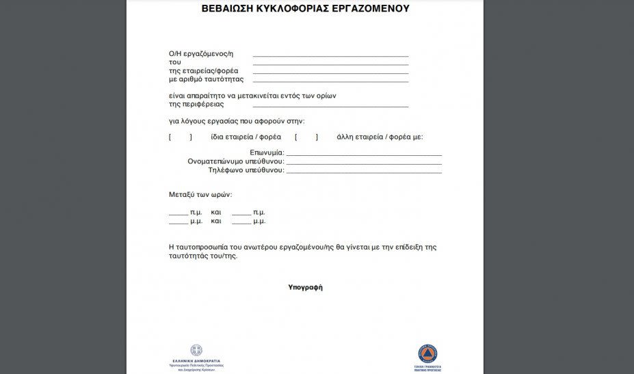 Τι αλλάζει με τις βεβαιώσεις μετακίνησης εργαζομένων με την παράταση του lockdown