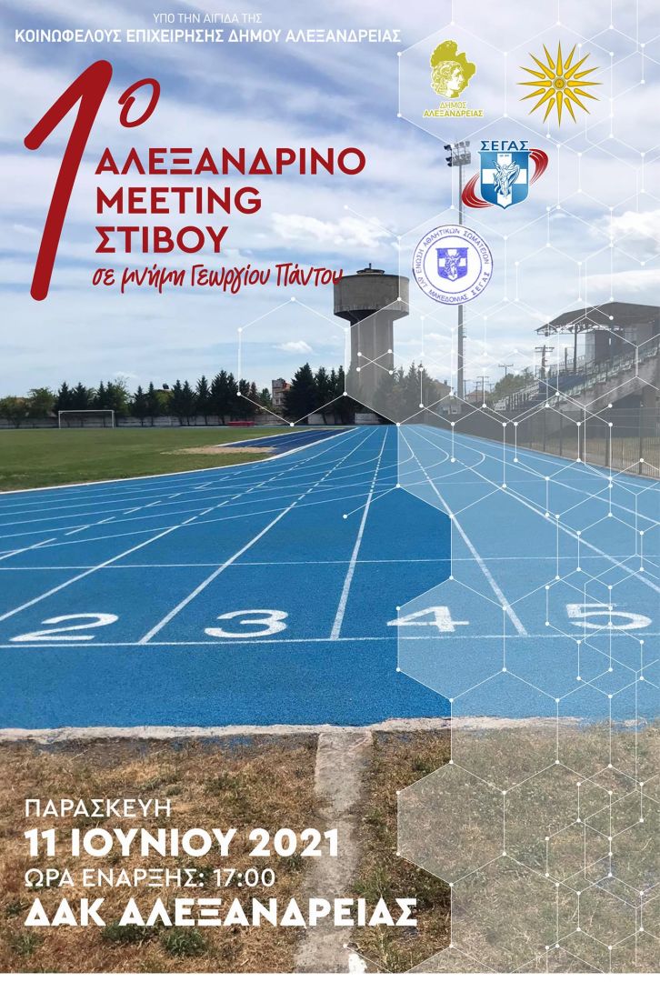 ΠΑΡΑΣΚΕΥΗ 11ΙΟΝΙΟΥ 2021 ΑΝΟΙΧΤΟ ΣΤΑΔΙΟ ΑΛΕΞΑΝΔΡΕΙΑΣ Η Ένωση Σωματείων Στίβου . Ο Γυμναστικός Αγωνιστικός Σύλλογος ΑΛΕΞΑΝΔΡΕΙΑ. Ο Δήμος Αλεξάνδρειας – ΚΕΔΑ.