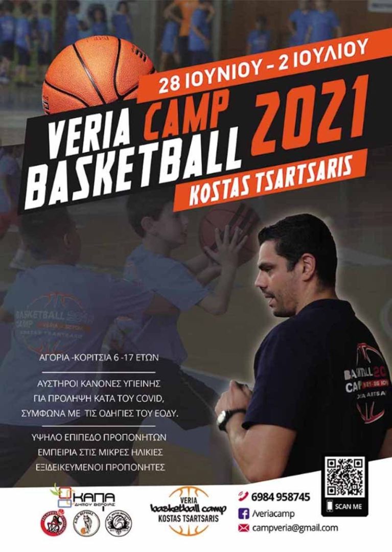 Για έκτη χρονιά θα διεξαχθεί στην πόλη της Βέροιας το camp καλαθοσφαίρισης «Veria Basketball Camp» με την υπογραφή του πρώην διεθνή καλαθοσφαιριστή Κώστα Τσαρτσαρή και την συνεργασία του Δήμου Bέροιας και των τμημάτων μπάσκετ του Φιλίππου, του Α.Ο.Κ., και των Αετών Βέροιας.