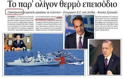 Όμως σύντομα βρεθήκαμε αντιμέτωποι με: πρωτόγνωρες απόπειρες μη εμπόλεμης κατάλυσης των χερσαίων και θαλασσίων συνόρων της χώρας μας από εργαλειοποιημένους μετανάστες, τη σύναψη ενός εκτός πάσης νομιμότητας και λογικής τουρκολυβικού μνημονίου, την προκλητική (“νταηλίδικη”, για τη συμφωνία γλώσσας και έργων) παραβίαση κυριαρχικών δικαιωμάτων της χώρας μας στην ανατολική Μεσόγειο. Παραμείναμε ψύχραιμοι (πάλι κομψός ο χαρακτηρισμός) και “ανυποχώρητοι στις κόκκινες γραμμές” (τις οποίες είδαμε παραδόξως να οριοθετούνται στα 6 ναυτικά μίλια και την εθνική μας αξιοπρέπεια να διασώζει o ικανότατος κυβερνήτης της φρεγάτας “ΛΗΜΝΟΣ”, ο αντιπλοίαρχος Ιωάννης Σαλιάρης)…