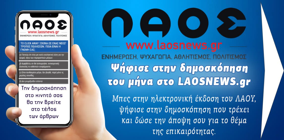 Μπες στην ηλεκτρονική έκδοση του ΛΑΟΥ, ψήφισε στην δημοσκόπηση που τρέχει και δώσε την άποψη σου για το θέμα της επικαιρότητας.