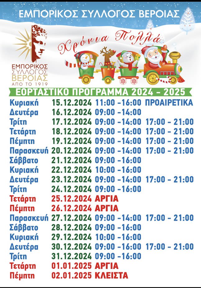 Το εορταστικό πρόγραμμα του Εμπορικού Συλλόγου Βέροιας: