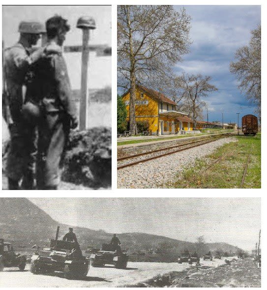 «[…] Δεν πέρασε καιρός και μας ήρθαν οι Γερμανοί με φόβο και λαχτάρα. Τους δεχθήκαμε πρωί πρωί και αρχίσαν να σπάνουν τα δένδρα απ’ το φράχτη του σπιτιού μου για να σκεπάζουν τα αυτοκίνητά τους. Εγώ τότε είχα πέντε γελάδια και εικοσιπέντε πρόβατα και τα πήγα στο Βάλτο για να τα γλιτώσω, όπως και άλλοι χωριανοί, την οικογένεια δε στο Βρυσάκι για πιο ασφάλεια, γιατί πίσω στους Αμπελότοπους είχαν στήσει κανόνια για να πολεμήσουν τους δικούς μας. Σχεδόν οι χωριανοί είχαν φύγει απ’ το χωριό τους προς τον Όλυμπο. Μετά ήρθε στρατός και άλλος. Έγινε λεηλασία στο σταθμό και στην αγορά. Κάτοικοι απ’ τα χωριά και στρατιώτες ανοίξαν τα μαγαζιά και τα ρήμαζαν. Εγώ έτυχα εκείνη τη μέρα εκεί. Οι στρατιώτοι οι Γερμανοί είχαν μπεί μέσα στο μαγαζί του Τ που το είχε ο Κ τότε υφασματοπωλείον και έπαιρναν υφάσματα, μετά ήρθε ένας αξιωματικός και τους επέπληξε για την κλοπή. Είχαν πάρει δύο τόπια υφάσματα και με τα δώσαν εμένα. Από μακρυά όμως με παρακολουθούσαν και όπως πήγα στο σπίτι και τα έκρυψα μέσα σ ένα κοφίνι ήρθαν από πίσω με τα πιστόλια στο χέρι και απειλούσαν να τους δώσω τα υφάσματα κι εγώ αμέσως τους τα έδωσα. Μετά πήγα στο Βάλτο για να φέρω τα πρόβατα καθώς και τις αγελάδες που είχαν γέννηση και την οικογένεια από το Βρυσάκι και μετά τη δουλειά με φόβο [..]».