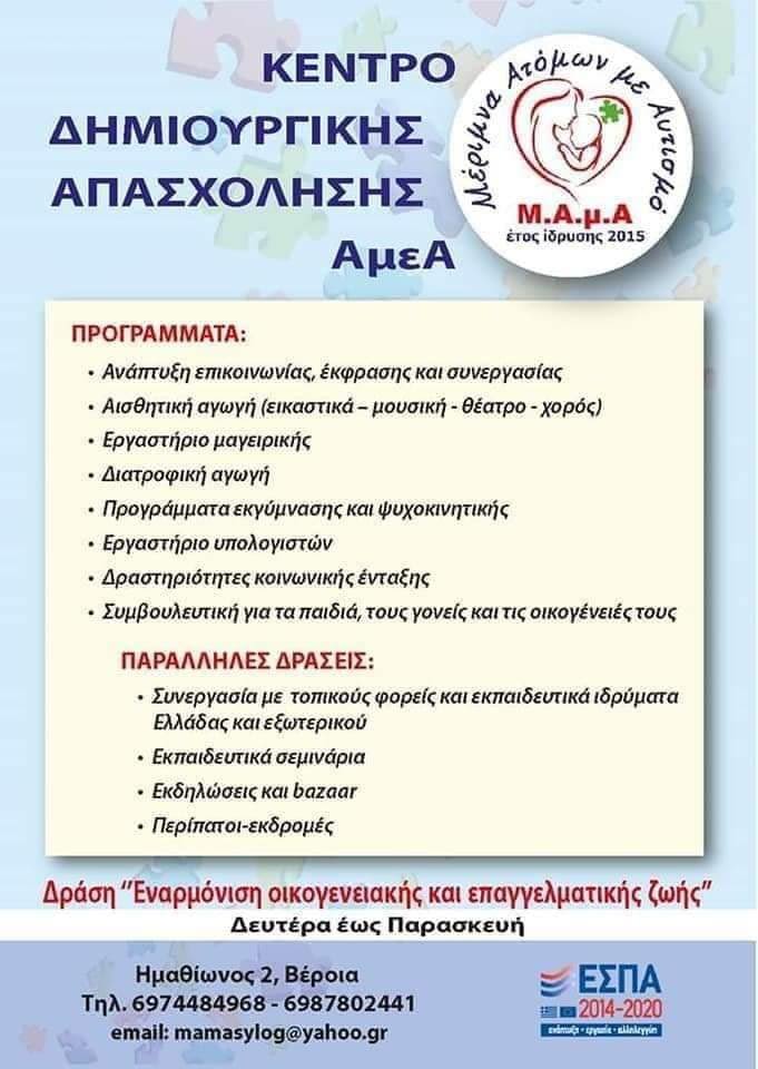 Δημιουργικής Απασχόλησης ΑμεΑ Μ.Α.μ.Α ,άνοιξε τις πόρτες του! Το κδαπ