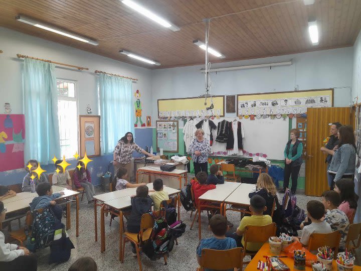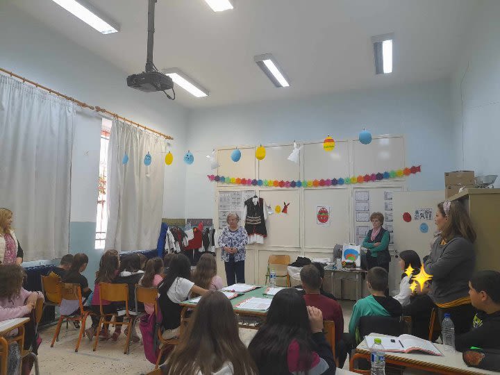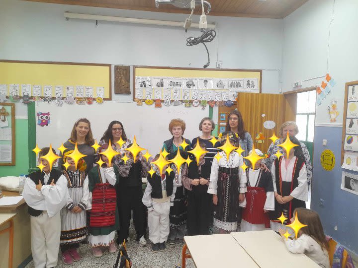Οι κυρίες του Δ.Σ. μίλησαν στα παιδιά για το Λύκειο των Ελληνίδων και τους σκοπούς του καθώς και για την ιστορία και τις ιδιαιτερότητες κάθε φορεσιάς κι έντυσαν με παραδοσιακές φορεσιές από διάφορες περιοχές του τόπου μας.