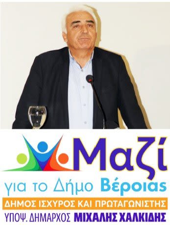 «Μαζί για τον νέο Δήμο Βέροιας», το όνομα του συνδυασμού του Μιχάλη Χαλκίδη με τρία χρώματα στο σήμα: μπλε, πράσινο και πορτοκαλίζων, για να δηλώσει προφανώς το άνοιγμα σε όλα τα κόμματα, χωρίς ταυτότητες, με τα οποία θα ξεκινήσει πιο στενές επαφές, όπως είπε. Το Μαζί, για τους συνεργάτες του αφού σε πολλά σημεία της χθεσινής του σύντομης ομιλίας του, τους επικαλέστηκε και το Μαζί, της συστράτευσης ακόμα και των συνυποψηφίων του της ίδιας πολιτικής δεξαμενής, στους οποίους έστειλε «μηνύματα» να παραμερίσουν τις φιλοδοξίες, για το καλό της πόλης…