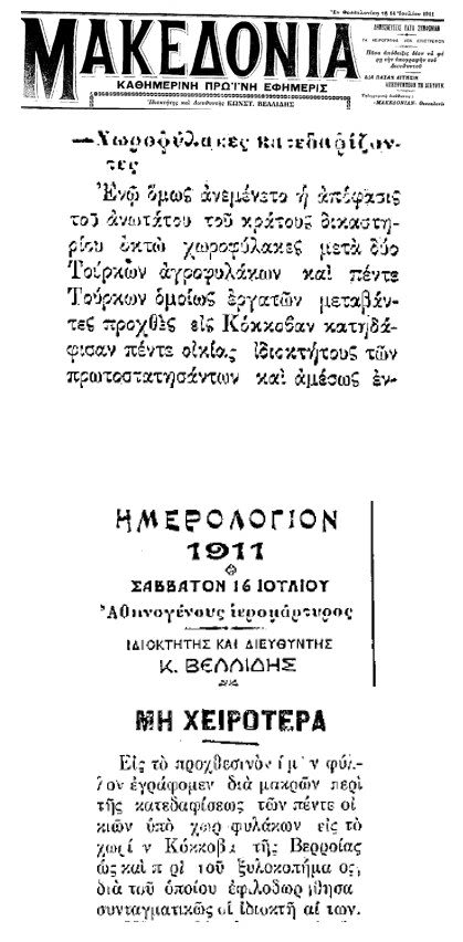 «Ἐκ Βεροίας (τοῦ τακτικοῦ ἀνταποκριτοῦ μας) τῇ 24 Ἰουλίου 1911