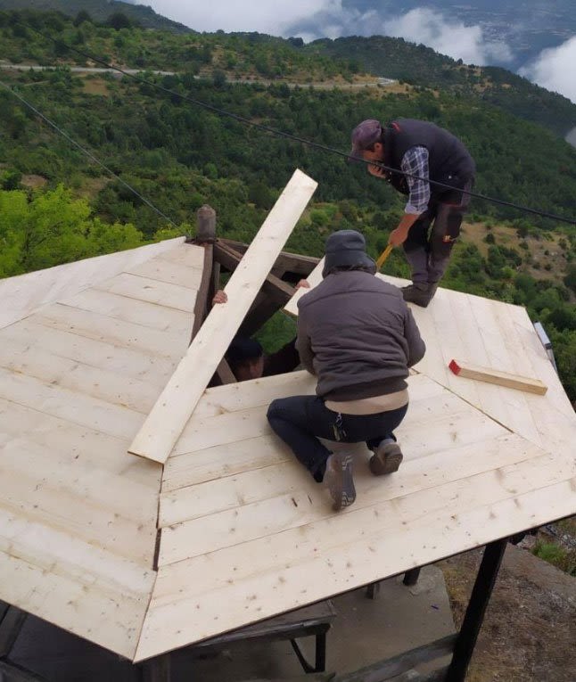 Οι εργασίες αφορούσαν την ολική αντικατάσταση της σκεπής του περιπτέρου με τοποθέτηση καινούργιας και την ολική αντικατάσταση της «επίπλωσής του».