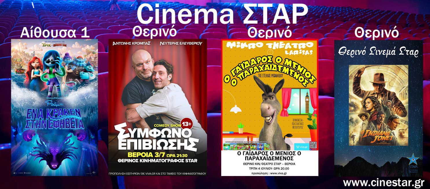 Επίσης μπορείτε να πληροφορηθείτε για όλο το πρόγραμμα του ΚινηματοΘέατρου ΣΤΑΡ στον παρακάτω σύνδεσμο: