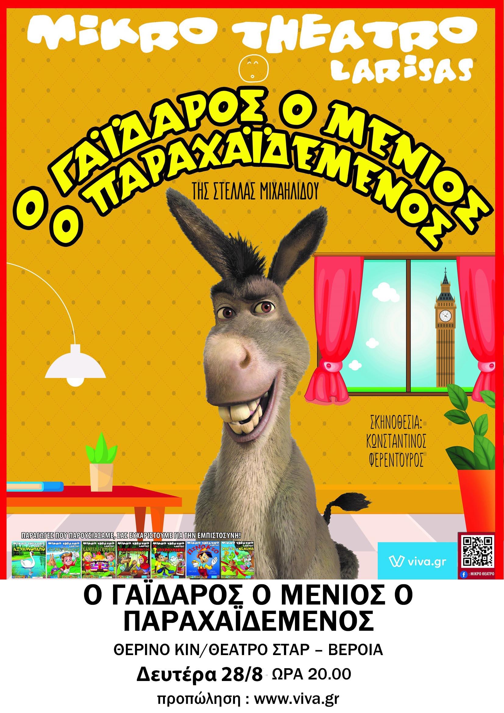 Ο ΓΑΙΔΑΡΟΣ Ο ΜΕΝΙΟΣ Ο ΠΑΡΑΧΑΙΔΕΜΕΝΟΣ στο θερινό ΚινηματοΘέατρο ΣΤΑΡ Βέροιας Δευτέρα 28/8 στις 20:00 προπώληση : https://www.viva.gr/tickets/theater/children/o-gaidaros-o-menios-o-paraxaidemenos/ Προπώληση 8€ - Ταμείο 10€ - INFO - 6974797109