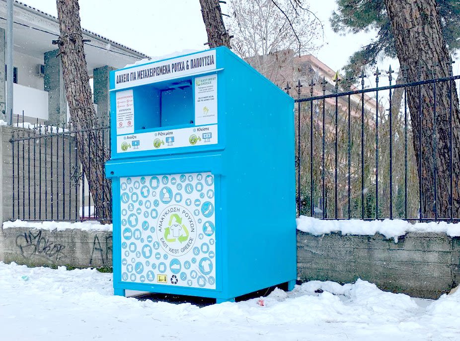 Σας υπενθυμίζουμε ότι μπορείτε να ανακυκλώνετε τα μεταχειρισμένα είδη ένδυσης και υπόδησης και λοιπά υφασμάτινα υλικά, όπως ρούχα, τσάντες, πάνινα παιχνίδια, παπούτσια κλπ. στους ειδικούς κάδους που βρίσκονται στα εξής σημεία: