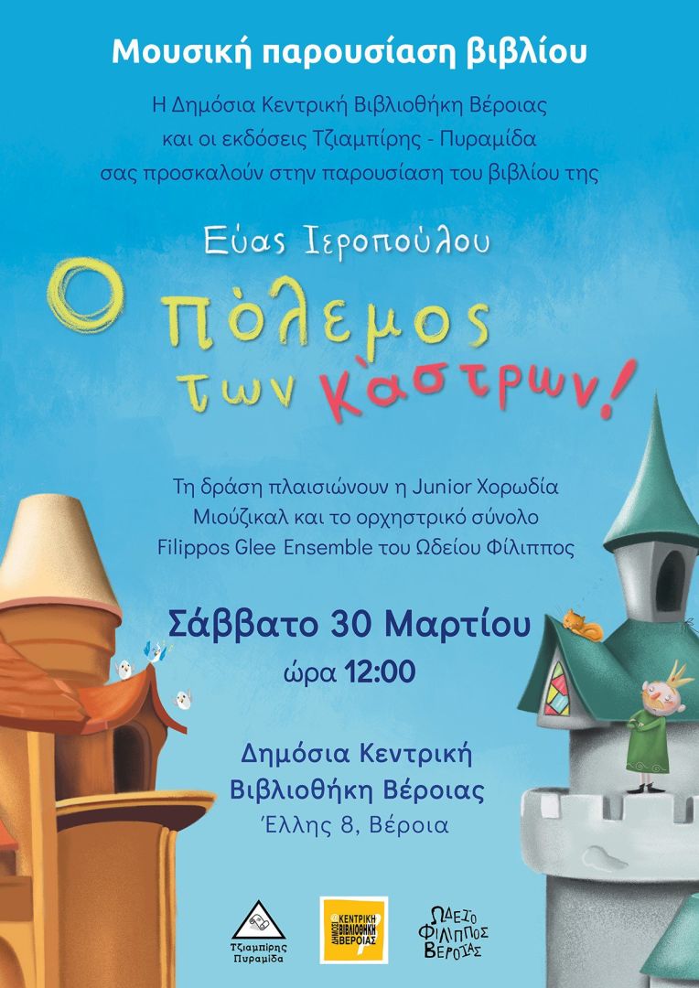 Το Σάββατο 30 Μαρτίου στην Βιβλιοθήκη Βέροιας η παρουσίαση του βιβλίου «Ο πόλεμος των κάστρων!» της Εύας Ιεροπούλου