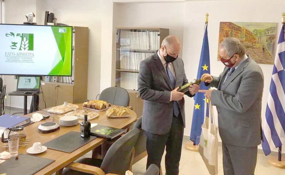 Την Κεντρική Υπηρεσία του ΕΛΓΟ – ΔΗΜΗΤΡΑ επισκέφθηκε χθες ο Υφυπουργός Αγροτικής Ανάπτυξης και Τροφίμων κ. Γιάννης Οικονόμου με τους συνεργάτες του. Αφού παρουσιάστηκαν στον Υφυπουργό οι δραστηριότητες του Οργανισμού ακολούθησε συζήτηση για τις σημαντικές προτεραιότητες που έχει θέσει η Διοίκηση, όπως η διάχυση των αποτελεσμάτων της έρευνας στα παραγωγικά συστήματα, τους μηχανισμούς υποστήριξης και τις δομές εκπαίδευσης και κατάρτισης που αποτελούν αιχμή του δόρατος της αναπτυξιακής πολιτικής του ΥΠΑΑΤ.