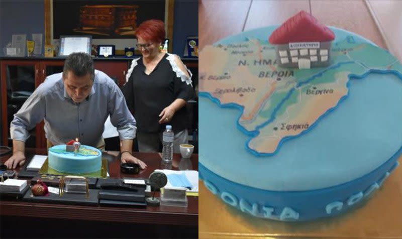 Τούρτα με… Διοικητήριο στην Ημαθία για τα γενέθλια του αντιπεριφερειάρχη Κώστα Καλαϊτζίδη