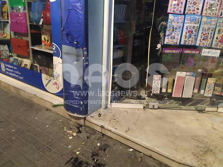 Ευτυχώς για τον ιδιοκτήτη του βιβλιοπωλείου το αυτοκίνητο προσέκρουσε κυρίως στην κολώνα που βρίσκεται στην είσοδο και έσπασε μόνο ένα μέρος της τζαμαρίας, ενώ υπέστη ζημιά και η πόρτα.