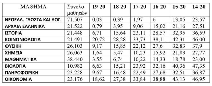 Υ.Γ: Πίνακες από τους οποίους αντλήθηκαν τα ποσοστά είναι αυτοί που αναρτά το υπουργείο παιδείας.