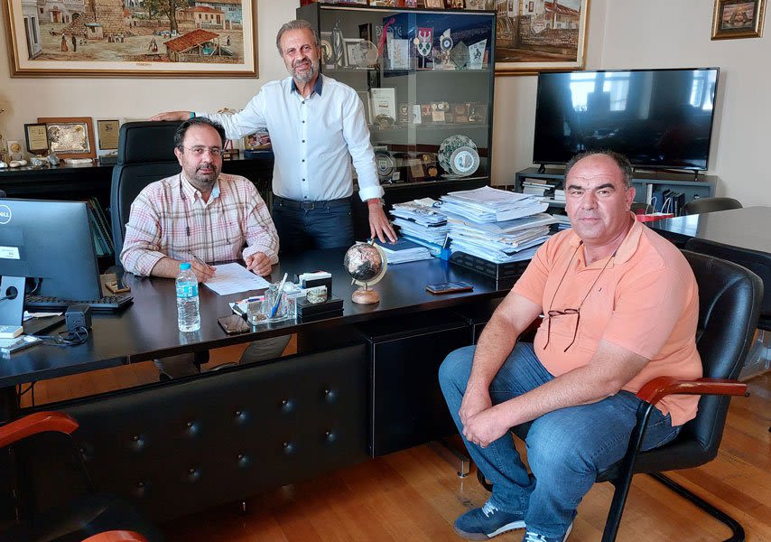Στην υπογραφή της σύμβασης για την «ΑΝΤΙΚΑΤΑΣΤΑΣΗ ΤΟΥ ΕΛΑΣΤΙΚΟΥ ΣΥΝΘΕΤΙΚΟΥ ΤΑΠΗΤΑ ΤΟΥ ΣΤΙΒΟΥ ΣΤΟ ΔΗΜΟΤΙΚΟ ΓΥΜΝΑΣΤΗΡΙΟ “Δ. ΒΙΚΕΛΑΣ”» προχώρησαν ο Δήμαρχος Βέροιας, κ. Κωνσταντίνος Βοργιαζίδης και ο Αντιδήμαρχος Τεχνικών, κ. Αλέξανδρος Τσαχουρίδης, με τον Παύλο Πετρίδη, η τεχνική εταιρία του οποίου εδρεύει στο Κιλκίς.