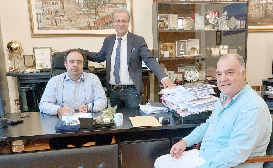 Στην υπογραφή της σύμβασης για το έργο «Ολοκληρωμένη Αστική Παρέμβαση στην περιοχή της Βεργίνας», ύψους 5.240.656,99 €, προχώρησαν ο Δήμαρχος Βέροιας, Κωνσταντίνος Βοργιαζίδης και ο Αντιδήμαρχος Τεχνικών Υπηρεσιών, Αλέξανδρος Τσαχουρίδης, με τον κ. Κωνσταντίνο Παντζαρτζίδη, εκπρόσωπο της «ΠΥΡΑΜΙΣ Α.Τ.Ε.», που εδρεύει στο Πλαγιάρι Δ. Πέλλας.