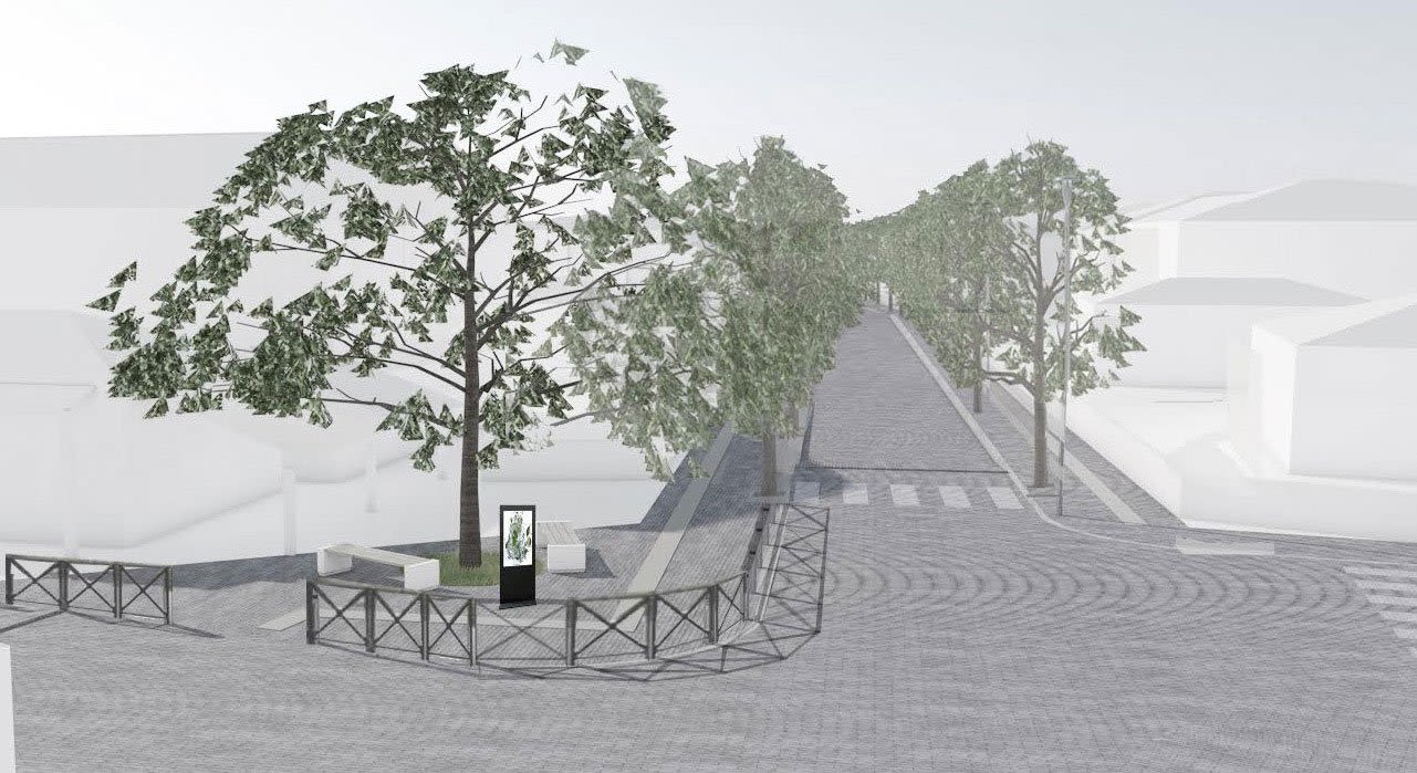 • Βιοκλιματική διαμόρφωση πεζοδρομίων και εκτεταμένη ανάπτυξη αστικού εξοπλισμού (παγκάκια, κάδοι απορριμμάτων) με έμφαση στη χρήση νέας τεχνολογίας (φόρτιση κινητών, Wi-Fi κλπ).