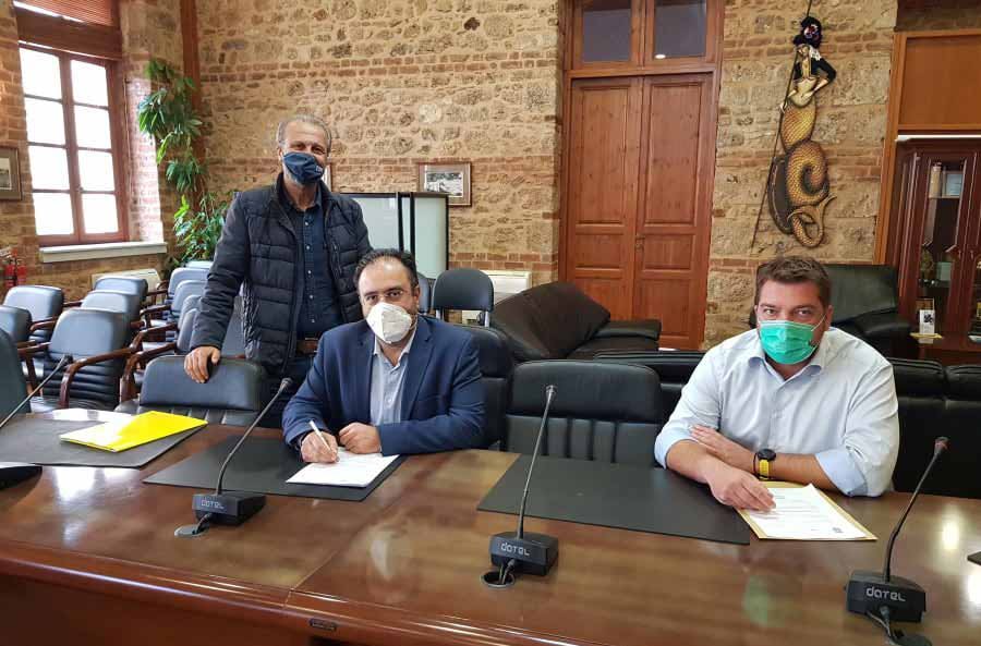 Στην υπογραφή σύμβασης για το έργο με τίτλο: «Αρδευτικό δίκτυο οικισμού Μέσης Δήμου Βέροιας» προχώρησαν τη Δευτέρα 11.10.21 ο Δήμαρχος Βέροιας, κ. Κωνσταντίνος Βοργιαζίδης, ο Αντιδήμαρχος Τεχνικών Υπηρεσιών, κ. Αλέξανδρος Τσαχουρίδης και ο κ. Διονύσιος Τζαφέρης εκπρόσωπος της «ΤΖΑΦΕΡΗΣ ΚΑΤΑΣΚΕΥΑΣΤΙΚΗ Ο.Ε.» με έδρα την Κατερίνη.