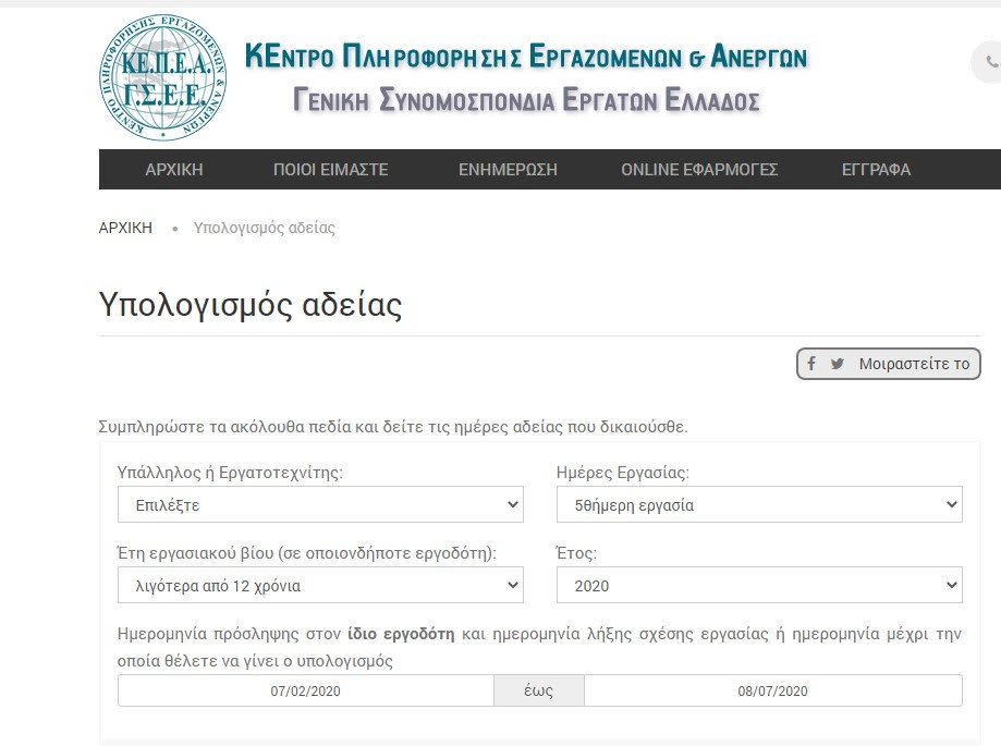το ΚΕΠΕΑ στην ιστοσελίδα του να υπολογίσουν μόνοι τους την άδεια που δικαιούνται