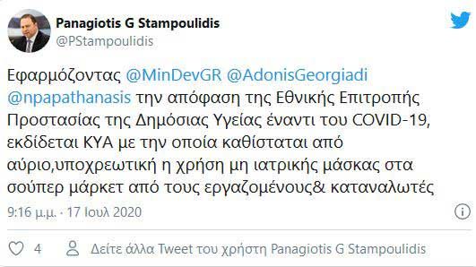 Αυτό αποκάλυψε, σε ανάρτησή του στο Twitter, ο γενικός γραμματέας Εμπορίου και Καταναλωτή, Παναγιώτης Σταμπουλίδης.