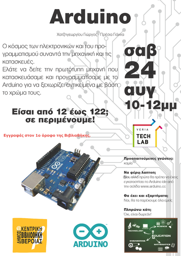 Veria Tech Lab: Κατασκευή και προγραμματισμός μηχανής με το Arduino! – Για εφήβους 12+ και ενήλικες