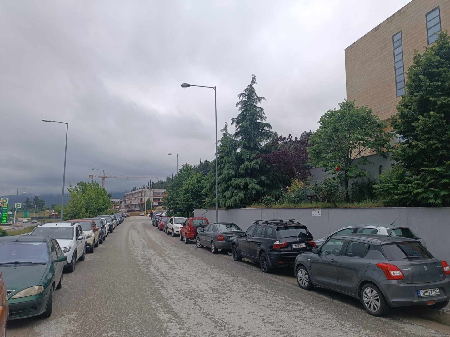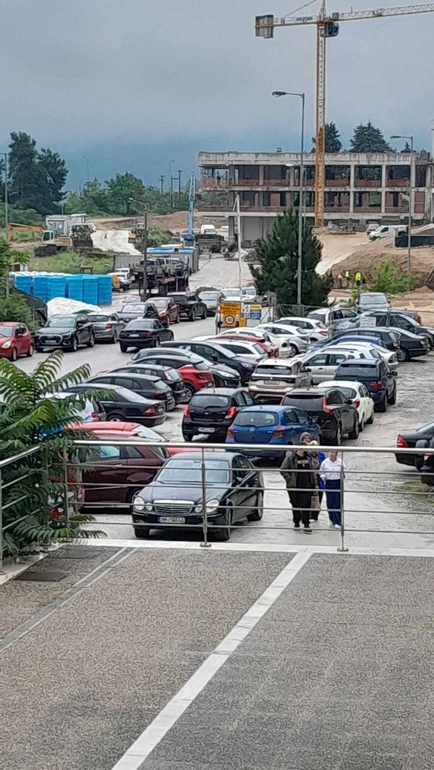 Ο ελεύθερος χώρος παραπλεύρως, όπως και ο δρόμος μπροστά από το κτίριο είχε γεμίσει και στις δύο πλευρές με σταθμευμένα οχήματα, με αποτέλεσμα πολίτες που ήθελαν να προσέλθουν στα δικαστήρια ήταν αναγκασμένοι υπό βροχή να παρκάρουν τα αυτοκίνητά τους εκατοντάδες μέτρα μακριά ή όσοι ήταν τυχεροί και πάρκαραν παραπλεύρως να τσαλαβουτούν στις λάσπες.
