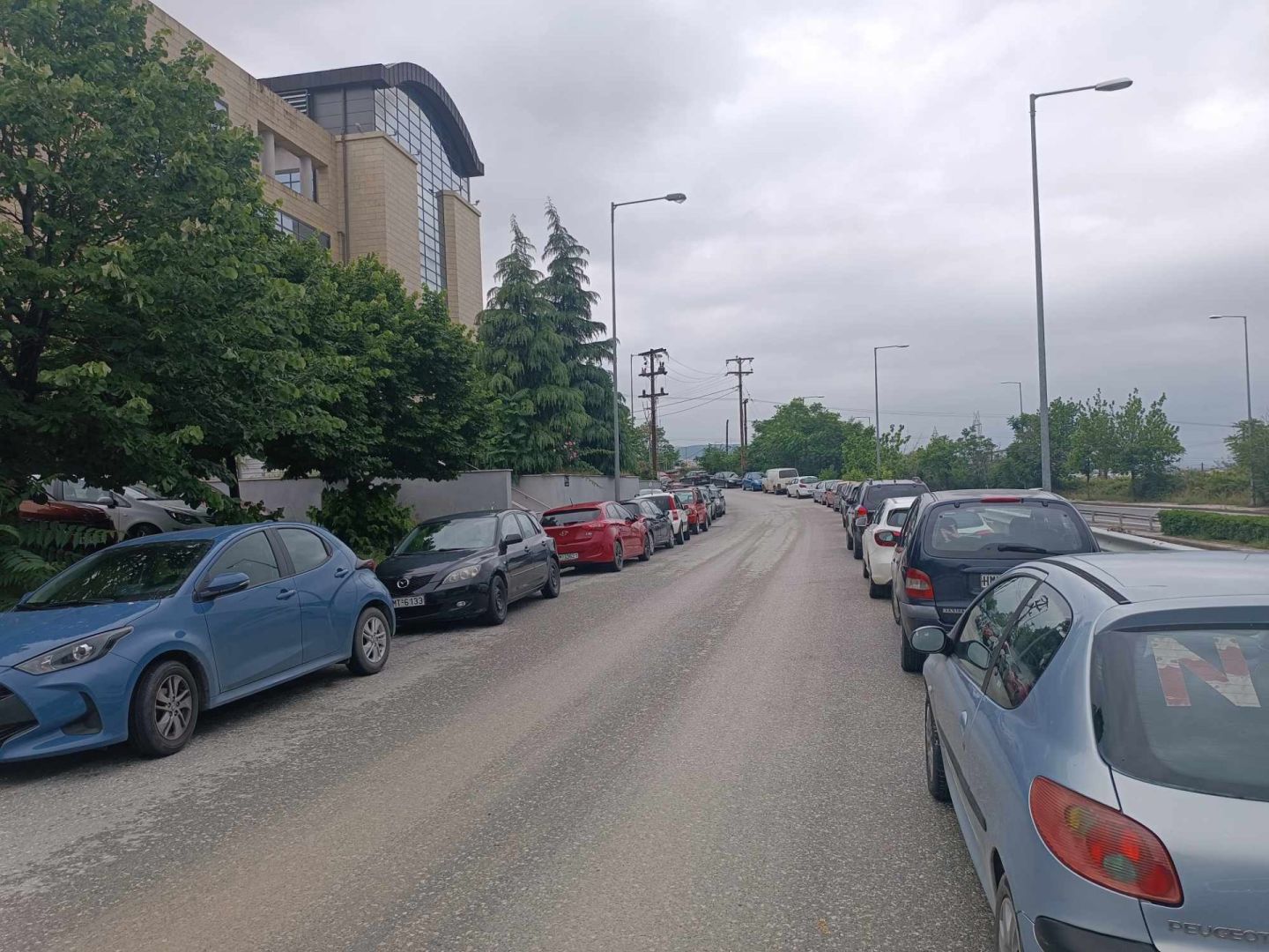Από φωτογραφίες που μας έστειλαν φαίνονται τα παρκαρισμένα αυτοκίνητα να ξεκινούν από την είσοδο του εργοταξίου του νέου Διοικητηρίου και ξεπερνούν τον χώρο στάθμευσης των απορριμματοφόρων του δήμου. Δυστυχώς το υπόγειο πάρκινγκ του Δικαστικού Μεγάρου έχει λίγες θέσεις στάθμευσης που καλύπτουν μόνο δικαστές και δικαστικούς υπαλλήλους, γεγονός που σταθερά προκαλεί πρόβλημα τις δικάσιμες ημέρες, κάτι που έχει επισημανθεί από τα πρώτα χρόνια λειτουργίας.