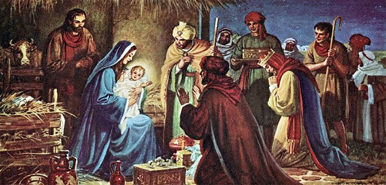 Το σύνθημα της εορταστικής εικόνας του γεγονότος έρχεται από τα βάθη της Ανατολής των τριών Μάγων στην Ιερουσαλήμ. Είναι ειδικοί Επιστήμονες που ασχολούνται με τον έναστρο ουρανό: οι Μελχιόρ, Βαλτάσαρ, Γασπάρ. έτσι τους ονομάζει ο ευαγγελιστής Ματθαίος στο Ευαγγέλιό του. Αναζητούν «που εστιν ο τεχθείς βασιλεύς των Ιουδαίων? Είδομεν γαρ αυτού τον αστέρα εν τη ανατολή και ήλθομεν προσκυνείσαι αυτόν.» Και ο μελωδός του απολυτίκιου των Χριστουγέννων συμπληρώνει ότι: το φως το της γνώσεως» ήταν αυτό που «δίδαξε» και φώτιζε το δρόμο του κατά τη διάρκεια της διαδρομής του. « Όταν το έμαθε ο Ηρώδης ταράχτηκε, κάλεσε τους μάγους να μάθει περισσότερα, και τους είπε να πάνε στη Βηθλεέμ να ψάξουν για το παιδί και όταν το βρουν να τον ειδοποιήσουν ώστε δήθεν, να πάει και ο ίδιος να το προσκυνήσει».